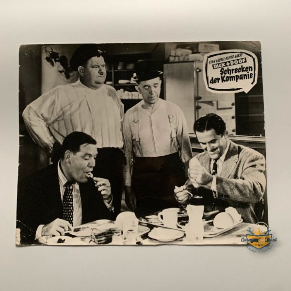 3 Stück Kino Aushangfotos Laurel und Hardy – Schrecken der Kompanie