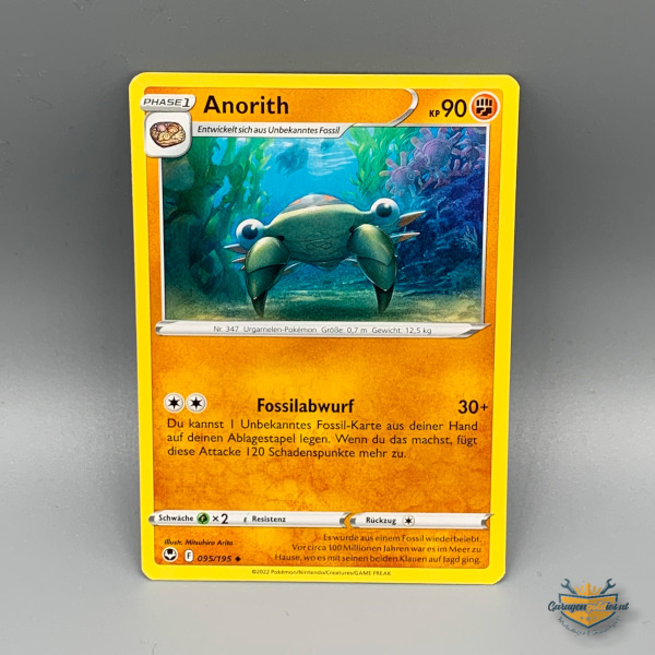 Pokemonkarte, Deutsch, Phase 1, Anorith, Nr. 347, Urgarnelen – Pokèmon, Größe 0,7 m, Gewicht 12,5 kg, KP 90