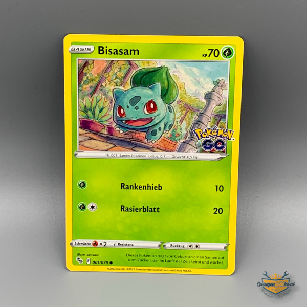 Pokemonkarte, Deutsch, Basis, Bisasam, Nr. 1, Samen – Pokèmon, Größe 0,7 m, Gewicht 6,9 kg, KP 70