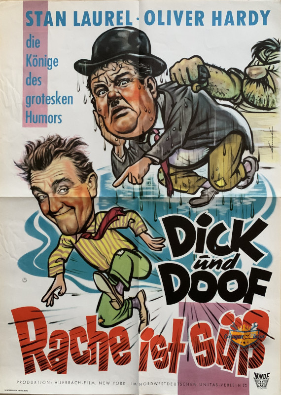 Filmplakat Stan Laurel & Oliver Hardy, Rache ist Süß, Poster des Nordwestdeutschen Unitas Film-Verleih, 83 x 60 cm