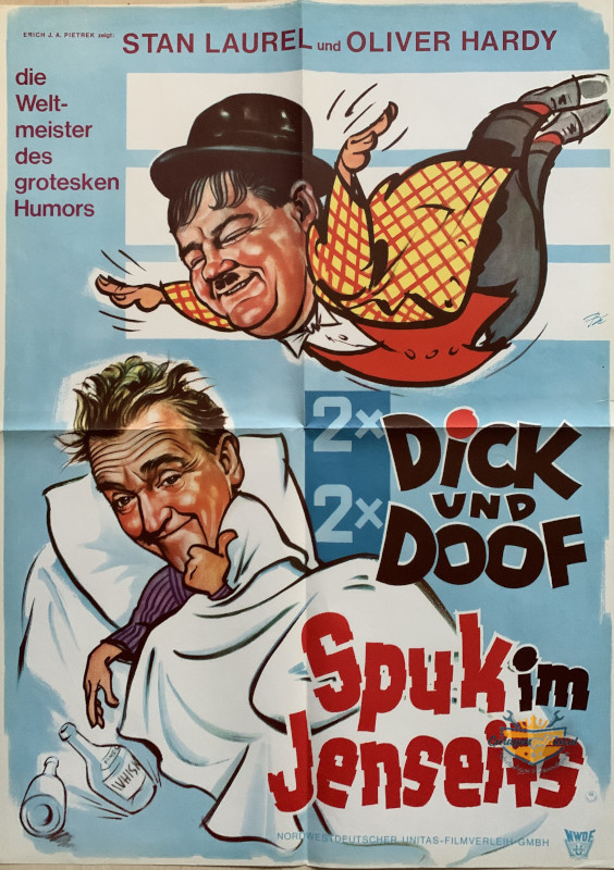 Filmplakat Stan Laurel & Oliver Hardy, Dick und Doof in Spuk im Jenseits, Poster des Nordwestdeutschen Unitas Film-Verleih, 84,5 x 61cm
