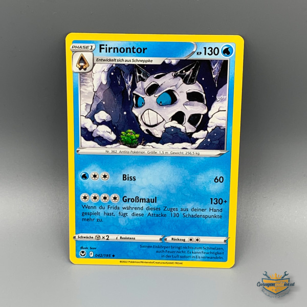 Pokemonkarte, Deutsch, Phase 1, Firnontor, Nr. 362, Antlitz – Pokèmon, Größe 1,5 m, Gewicht 256,5 kg, KP 130