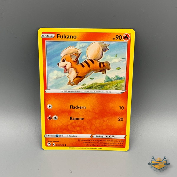 Pokemonkarte, Deutsch, Basis, Fukano, Nr. 058, Welpen – Pokèmon, Größe 0,7 m, Gewicht 19 kg, KP 90
