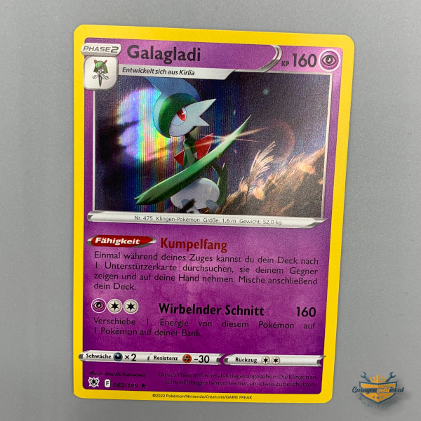 Pokemonkarte, Deutsch, Phase 2, Galagladi, Nr. 475, Klingen – Pokèmon, Größe 1,6 m, Gewicht 52 kg, KP 160