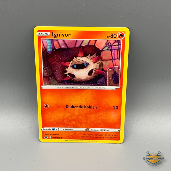 Pokemonkarte, Deutsch, Basis, Ignivor Nr. 636, Fackel – Pokèmon, Größe 1,1 m, Gewicht 28,8 kg, KP 80