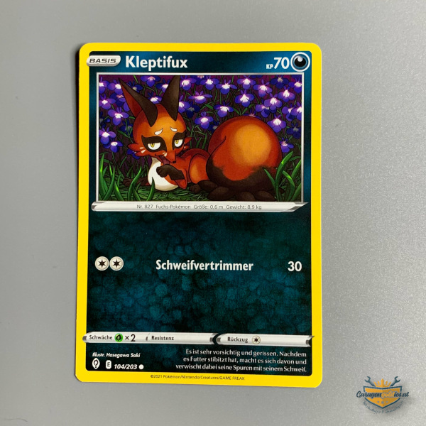 Pokemonkarte, Deutsch, Basis, Kleptifux Nr. 827, Fuchs – Pokèmon, Größe 0,6m, Gewicht 8,9kg, KP 70