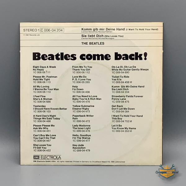 The Beatles, Side A Komm Gib Mir Deine Hand, Side B Sie Liebt Dich, 1964 Vinyl Single 45RPM Odeon