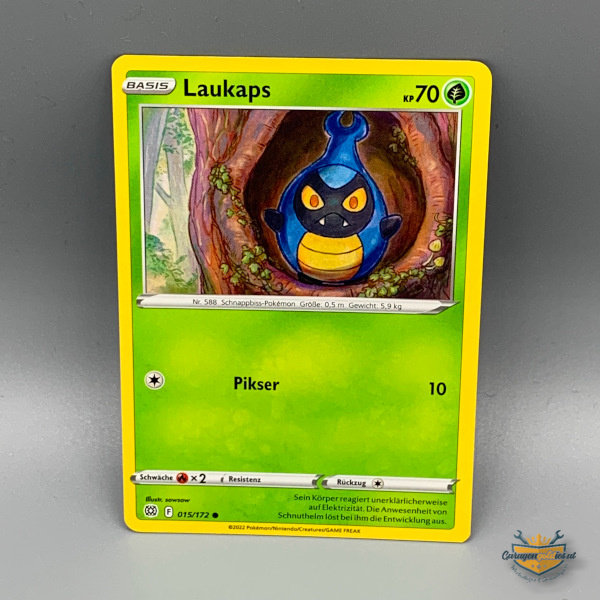 Pokemonkarte, Deutsch, Basis, Laukaps, Nr. 588, Samen – Pokèmon, Größe 0,5 m, Gewicht 5,9 kg, KP 70