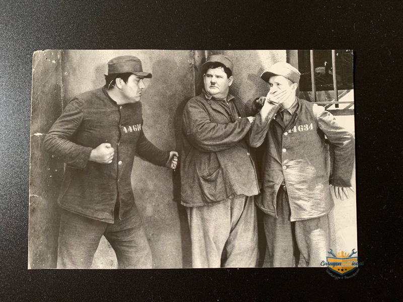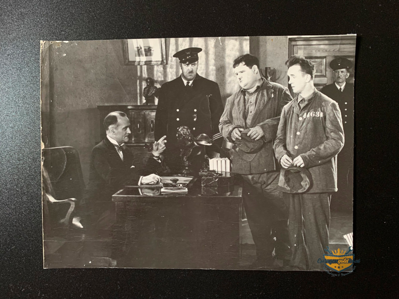 Laurel & Hardy 7 Stück Kino-Aushangfotos Pardon Us von Jupiter-Film GmbH, Hinter Schloss und Riegel Film von 1931, 26×18,5