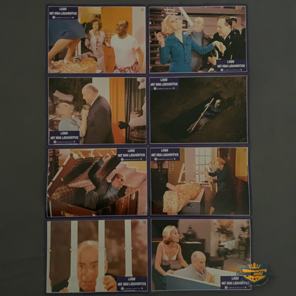 Louis de Funes in Louis mit dem Leichentick, 2 Stk. Kino – Aushang 84×60 cm, besser bekannt als „Hasch mich, ich bin der Mörder“, von 1971 mit Bernard Blier und Claude Gensac