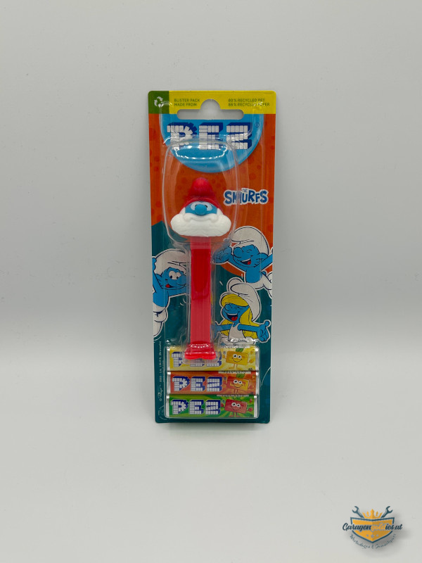 Papa Schlumpf Pez Spender, The Smurfs, Original Verpackt, Bonbons nicht mehr zum Verzehr geeignet