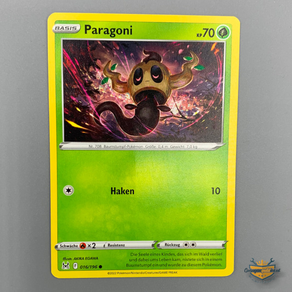 Pokemonkarte, Deutsch, Basis, Paragoni Nr. 708, Baumstumpf – Pokèmon, Größe 0,4m, Gewicht 7 kg, KP 70