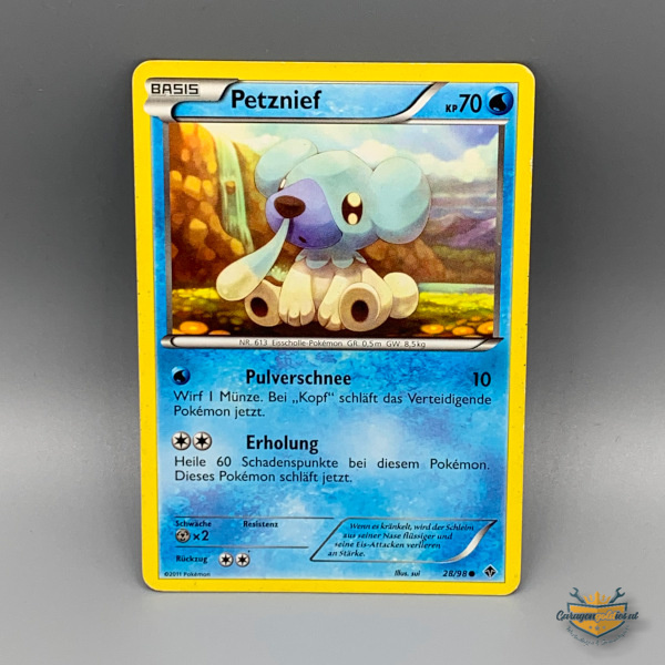 Pokemonkarte, Deutsch, Basis, Petznief, Nr. 613, Eisscholle – Pokèmon, Größe 0,5 m, Gewicht 8,5 kg, KP 70