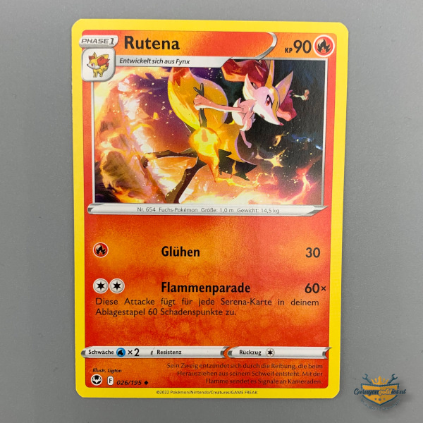 Pokemonkarte, Deutsch, Phase 1,  Rutena Nr.654, Fuchs – Pokèmon, Größe 1,0 m, Gewicht 14,5 kg, KP 90