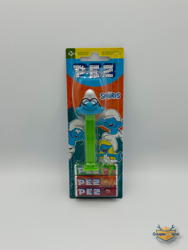 Schlaubi Schlumpf Pez Spender, The Smurfs, Original Verpackt, Bonbons nicht mehr zum Verzehr geeignet