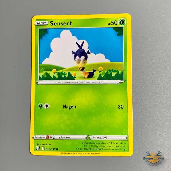 Pokemonkarte, Deutsch, Basis, Sensect Nr. 824, Larven – Pokèmon, Größe 0,4m, Gewicht 8kg, KP 50