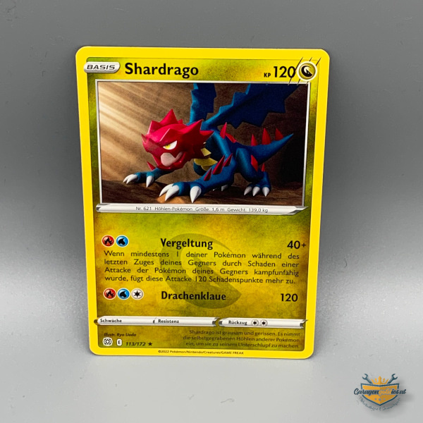 Pokemonkarte, Deutsch, Basis, Shardrago, Nr. 621, Höhlen – Pokèmon, Größe 1,6 m, Gewicht 139 kg, KP 120