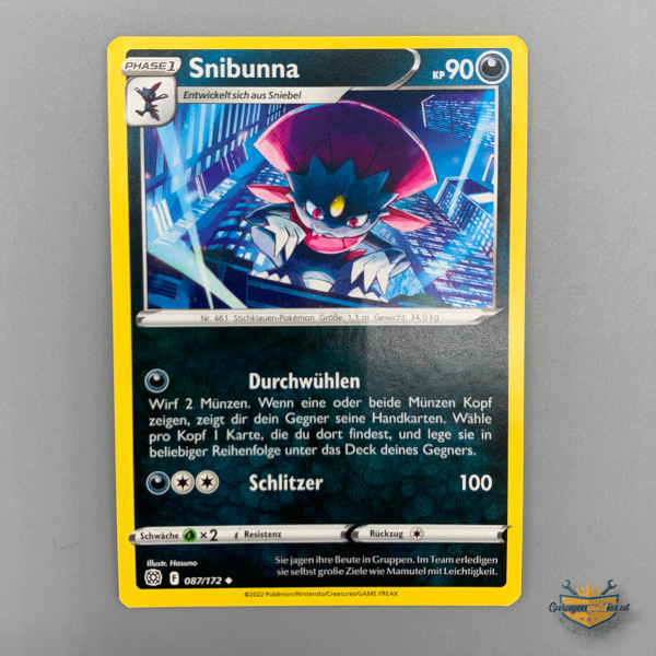 Pokemonkarte, Deutsch, Phase 1, Snibunna Nr.461, Stichklauen- Pokèmon, Größe 1,1 m, Gewicht 34 kg, KP 90