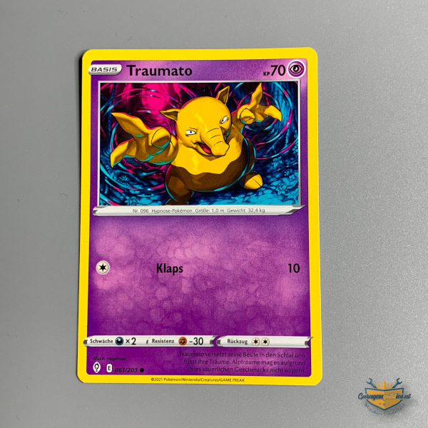 Pokemonkarte, Deutsch, Basis, Traumato Nr. 96, Hypnose – Pokèmon, Größe 1m, Gewicht 32,4kg, KP 70