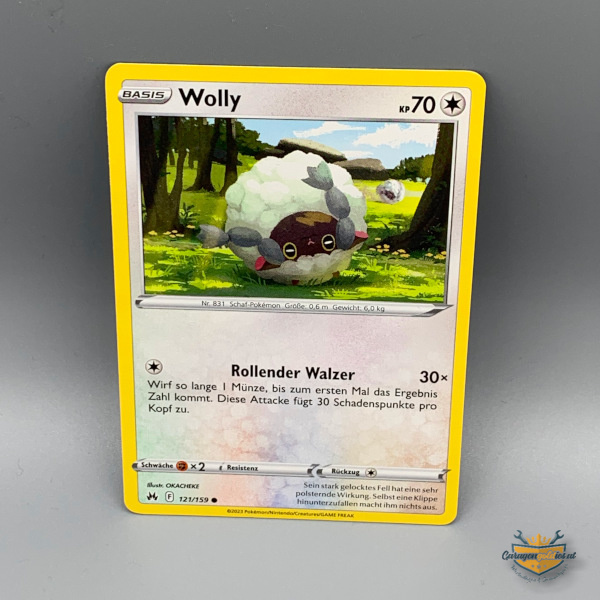 Pokemonkarte, Deutsch, Basis, Wolly, Nr. 831, Schaf – Pokèmon, Größe 0,6 m, Gewicht 6 kg, KP 70